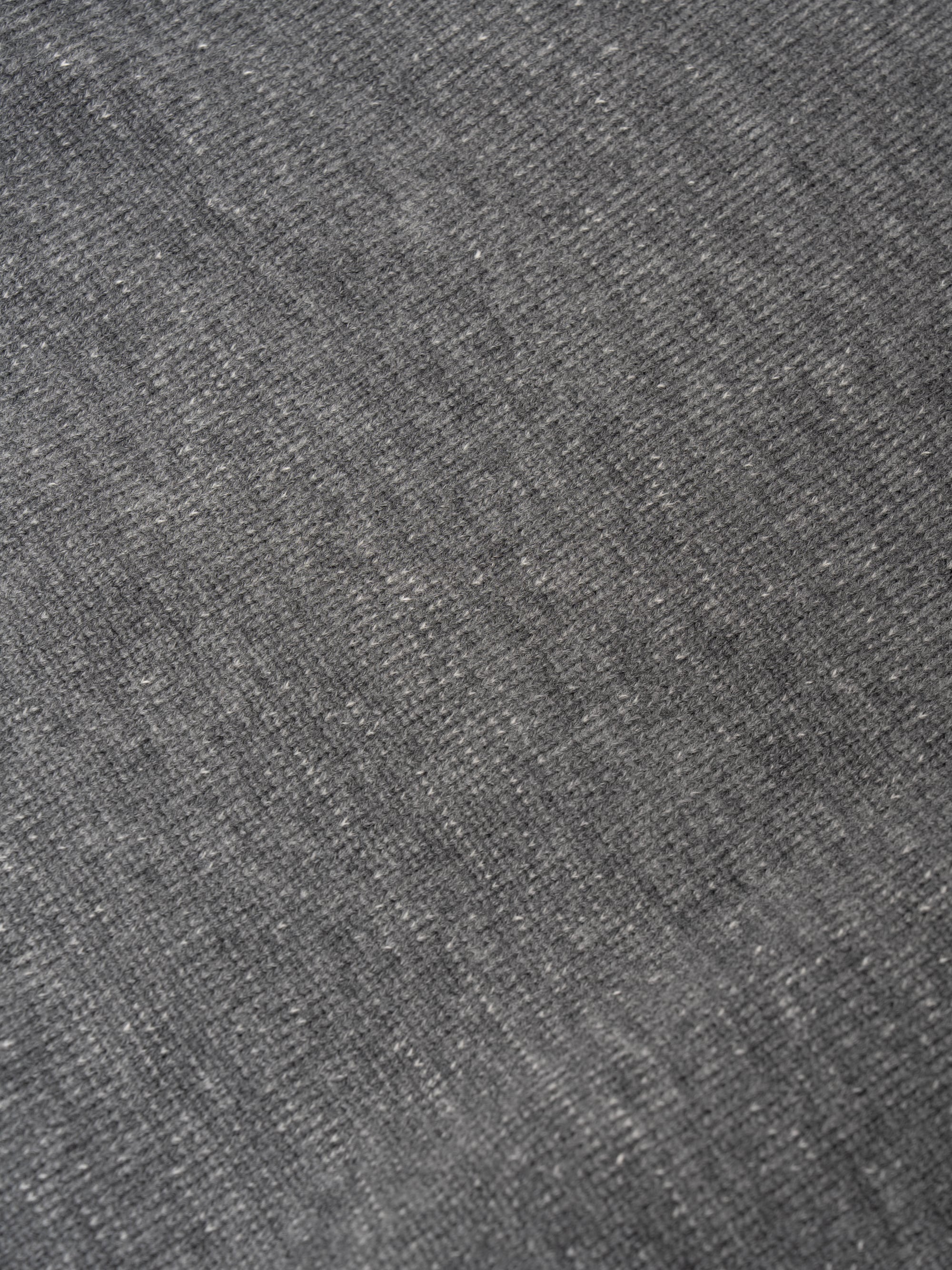 またドロップショルダーにネックと袖口、裾口のリブがアクセントとで上品さと